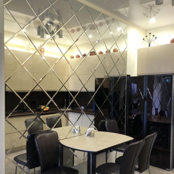 Использована зеркальная плитка "вытянутый ромб" с фацетом.