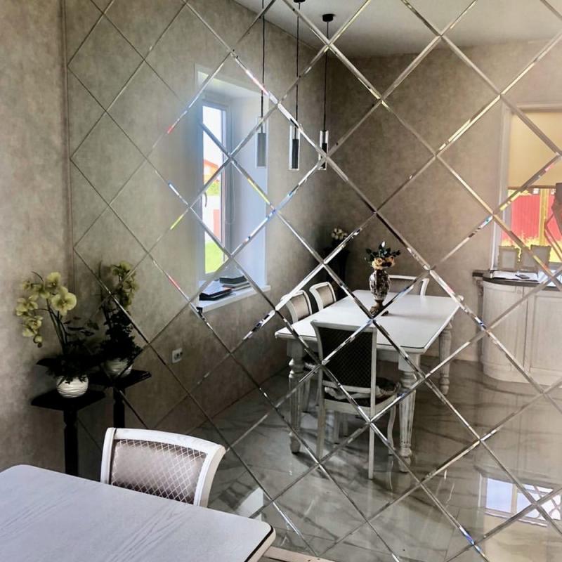 Использована серебряная квадратная зеркальная плитка 18х18.